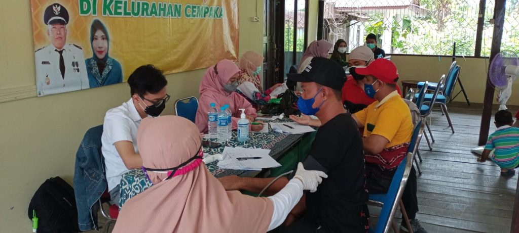 Bersama Lurah Cempaka, PKM Rawat Inap Cempaka, Bhabinkamtibmas dan Bhabinsa Cempaka melakukan kegiatan Vaksinasi Covid 19 kepada warga masyarakat Kelurahan Cempaka yang masih banyak belum melaksanakan vaksin.