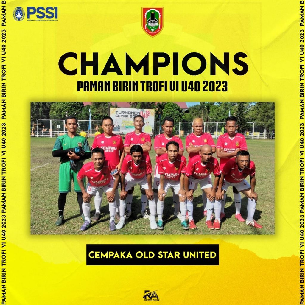 Pada hari Rabu tanggal 07 Juni 2023 pukul 15.00 WITA bertempat di Lapangan Murjani Banjarbaru. Alhamdulillah Tim Cempaka United Kelurahan Cempaka berhasil menjadi JUARA Paman Birin Trophy VI 2023 dengan mengandaskan perlawanan dari Tim Kelurahan Landasan Ulin Utara (Laura ) dengan skor 2 – 1. Gol pertama berbuah pada babak pertama melalui tendangan Tolhah, pemain andalan Cempaka United, lalu pada babak kedua, Jamroni ( Ivan Jamorano ) berhasil menggandakan skor. Cempaka United unggul 2-0.