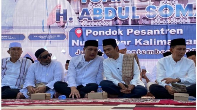 Tidak hanya sekadar hadir, Aditya pada kesempatan itu juga turut meletakkan batu pertama pembangunan masjid di Ponpes Nurul Azhar Kalimantan.